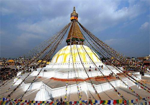 清晨可到酒店观景台上,欣赏喜马拉雅雪山的日出,天高气爽时,世界10座最高峰的其中五座超过8000米高的雪峰在你眼前呈现,晨曦乍现,脚下山间云雾飘渺,仿若仙景,极为壮观。酒店用完早餐后乘车返回加德满都,参观世界最大的圆佛塔"博大哈大佛塔"BoudhanathStupa(约1小时)这是藏传佛教的圣地,俗称"小西藏"。参观世界文化遗产--加德满都杜巴广场,广场中有许多的代表性建筑:由英勇善战的廓尔卡士兵把守的哈努曼多卡宫、加德满都老皇宫,始建于13世纪,历史悠久,规模庞大,被称为尼泊尔建筑艺术的精华;世界上唯一活女神的住所之地--古朴精致的库玛丽神庙;赋予加德满都市名的独木庙、塔莱珠女神庙等。下午之后于加德满都的购物区泰米尔(Thamel,俗称"老外街")自由选购精美尼泊尔手工艺品、披肩、银器饰品、音乐碟、红茶等,晚餐于当地特色餐厅,品尝及观赏尼泊尔歌舞风味餐,体验尼泊尔风情.